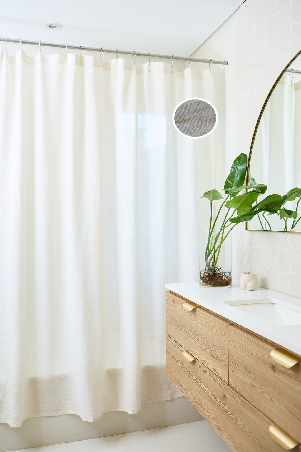 La Cortina de Baño Tela Gasa Tusor de Isahome. Fabricada en 100% algodón, esta cortina combina funcionalidad y estilo, ofreciendo un diseño recto que se adapta a cualquier decoración, es ideal para cubrir adecuadamente tu espacio, brindando privacidad y un toque de sofisticación.